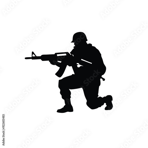 silhouette, gun, soldier, vector, people, illustration, black, rifle, music, military, person, children, weapon, shadow, war, woman, boy, guitar, hand, army, man