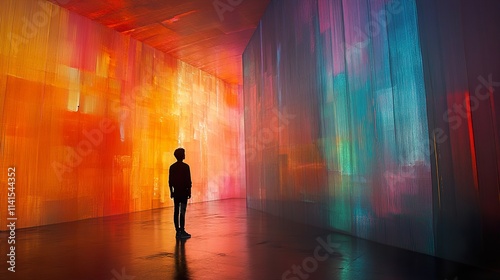 A Solitary Figure in a Vibrant, Colorful Room