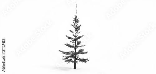 A solitary fir tree, stark against a pure white backdrop, studio shot, minimalist