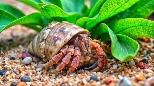 hermit, crab, shell, worn, solitary, beach, sand, textured, seaweed, fragment, antennae, peer, single
