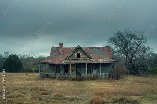 A solitary house in the wilderness in Texas. A very atmospheric image of the American wilderness.