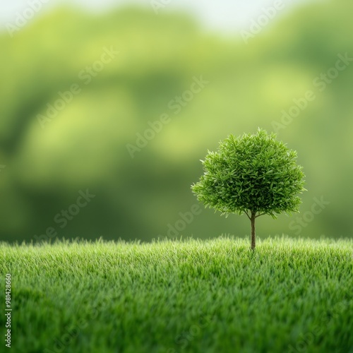 A solitary tree surrounded by lush green grass, symbolizing nature and tranquility in a serene landscape.
