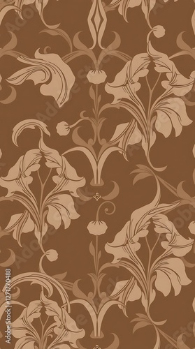 A sophisticated, elegant seamless pattern with a repeating Art Nouveau design featuring flowing lines, organic shapes, and muted earthy tones, creating a serene and luxuriou.