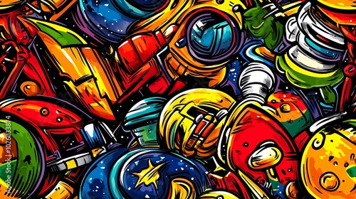 space, doodle, pattern, astronaut, satellite, station, deep, star, galaxy, futuristic, playful, hd, quality, high-coloured, bright, colours, cartoonish, style, joyful, lively, creative, vibrant, decorative, colourful, visual, unique, imaginative, cheerful, artistic, modern, whimsical, exploration