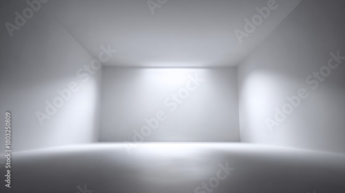 A spacious, minimalistic room with plain white walls and soft lighting, creating a serene and open atmosphere.