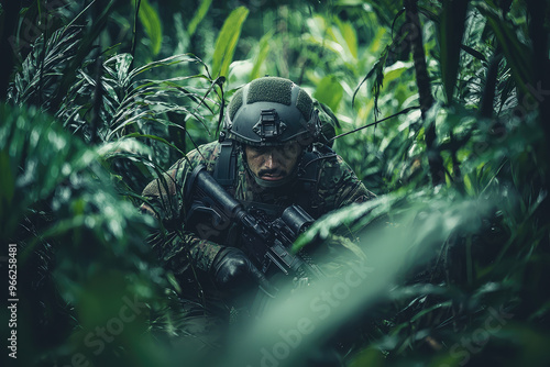 special forces, operator, jungle, dense, tactical, military, camouflage, soldier, green, nature, foliage, weapon, stealth, training, action, adventure, survival, environment, sharpened, determination, combat, armed, professional, exploration, strategy, teamwork, resilience, intense, skill, forest, vegetation, mission, elite, maneuvering, armed forces, reconnaissance