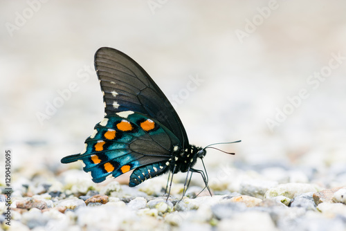 A Spicebush Swallowtail butterfly puddling mineral rich water