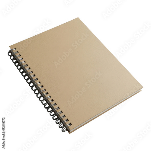 A spiral bound notebook with blank kraft paper pages isolated on transparent background