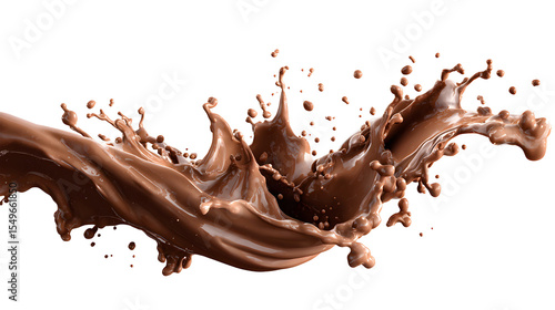 A splash of chocolate milk is shown in a white background