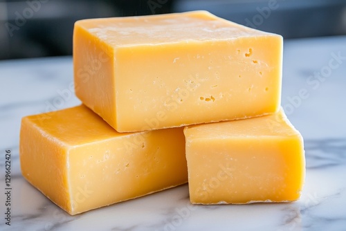 stack, american, cheese, slice, neatly, arranged, kitchen, counter