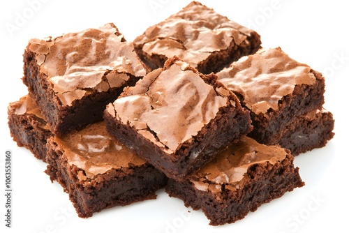 a stack of freshly baked brownies, detailed crumb and smooth surface, isolated on white background