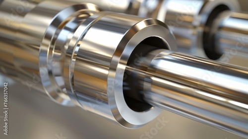 A stainless steel pipe is inserted into another, showcasing crisp and clean lines.