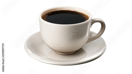 A steaming cup of black coffee served on a classic white saucer, perfect for morning boosts and cozy moments.