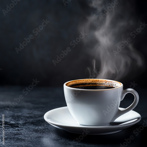 A steaming cup of freshly brewed coffee on a dark background, evoking warmth and comfort, perfect for cozy moments.