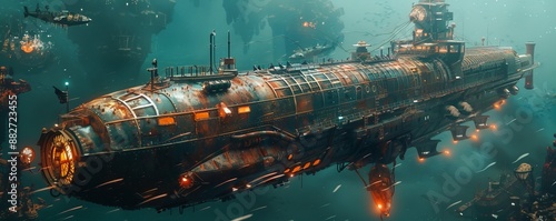A steampunk submarine discovering an underwater alien civilization that has mastered genetic engineering.