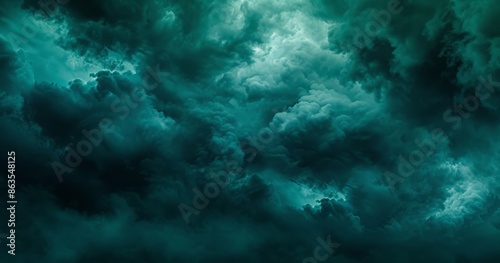A stormy night presents a skyscape of dark, smokey clouds, with strong winds and a dark blue sky, styled in an experimental art form.