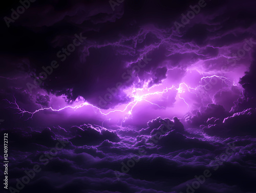 A stormy sky with purple clouds and lightning bolts