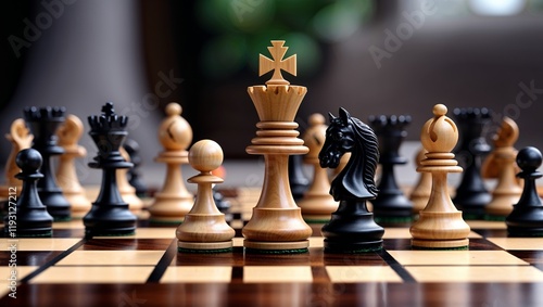 A Strategic Game of Chess Showing the Queen Piece in a Checkmate Position on the Board During Final Moves