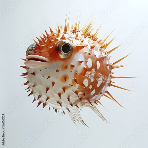 A Striking 3D Render of a Spiny Pufferfish Vibrant Orange and White Aquatic Creature.