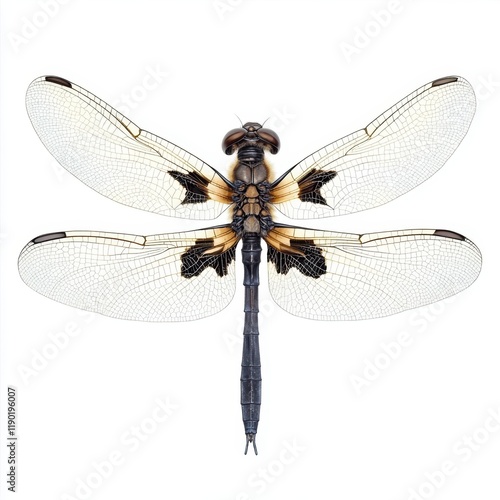 dragonfly, black, body, wing, nature, insect, detail, pattern, flight, environment, beauty, creature, fauna, art, elegance, wildlife, ecosystem, summer, colours, design, animal, delicate, small, habitat, vibrant, species, observation, photo, natural, landscape, isolated, white, background, object, element