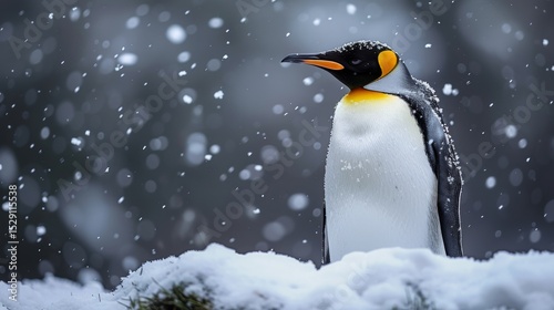 penguin, winter, wildlife, snow, standing, majestic, resilience, king, landscape, cold, nature, beauty, animal, snowflake, habitat, antarctica, unique, avian, character, chill, weather, personality, stunning, coldness, season, elegance, presence, aquatic, feather, glacé, environment, ice, beak, snow-covered, natural, adorable
