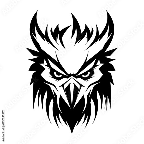 A striking silhouette of a harpy's head, combining human and bird-like features with a fierce expression. Perfect for fantasy-themed designs, mythology illustrations, gaming logos