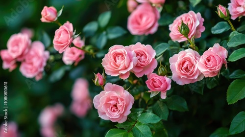 A stunning arrangement of pink roses displays their delicate petals and vibrant green leaves inspiring emotions of beauty and tenderness