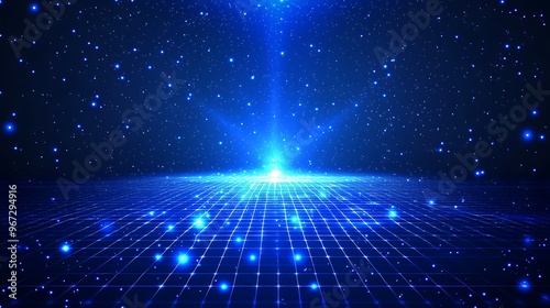 A stunning blue galaxy background featuring radiant stars and a cosmic grid, perfect for futuristic or technology-themed projects.