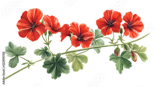 A Stunning Botanical Illustration of Bold Red Geranium Blooms