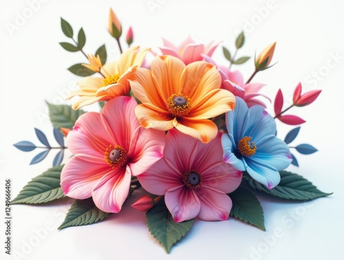 A stunning bouquet of fresh colorful flowers arranged elegantly on a white background, showcasing natural beauty and delicate petals.