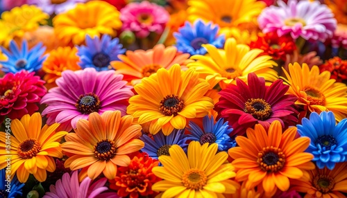 flower, colourful, background, summer, nature, vibrant, floral, bouquet, bright, beautiful, gerbera, daisy, red, yellow, pink, blue, orange, macro, closeup, pattern, texture, bloom, blossom, garden, fresh, beauty, joy, happy, cheerful, spring, celebration, mother's day, wedding, greeting card, invitation, wallpaper, design, abstract