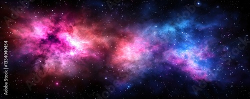 A stunning cosmic landscape featuring vibrant colors of pink, blue, and purple, representing the beauty of space and celestial phenomena.