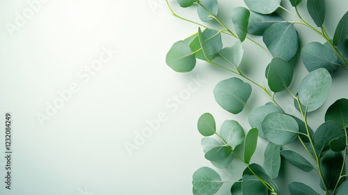 A stunning eucalyptus branch elegantly showcasing its vibrant green leaves, ideal for naturethemed design works