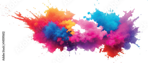 "A Stunning Explosion of Bright and Colorful Watercolor Splashes: Bold Brush Strokes in Vibrant Rainbow Hues Create a Modern, Abstract Aquarelle Design Against a Crisp White Background"