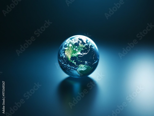 A stunning globe depicting Earth, showcasing vibrant colors and a sleek, reflective surface against a dark background.