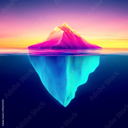 A stunning iceberg reflects vibrant colors at sunset.