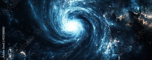 A stunning image of a spiral galaxy in deep space, showcasing swirling cosmic clouds and brilliant stars against a dark celestial backdrop.