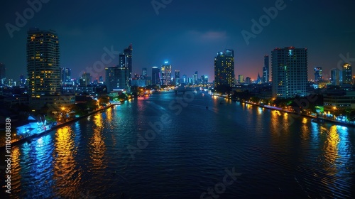 city, skyline, river, night, light, serenity, nightlife, serene, metropolis, illumination, exploration, dynamic, peaceful, glowing, waterfront, vibrant, photo, stunning, contemporary, structure, building, artistic, atmospheric, ambience, nightscape, scenic, evening, technology, modern, urban, leisure, destination, creative, colourful, beauty, water, river bank, adventure, travel, culture, architecture, landscape, tour tourism, view