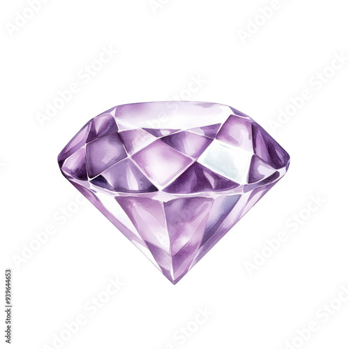 A stunning purple diamond showcasing intricate facets and brilliant clarity, perfect for jewelry or decorative art. transparent background watercolor style