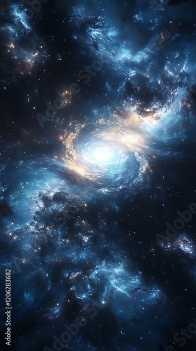 A stunning spiral galaxy illuminated in vibrant blues and whites.