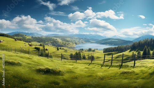A stunning spring day landscaping views of fertile land surrounded beautiful green vegetation, wide stretches of hills and mountains with clear skies in spring