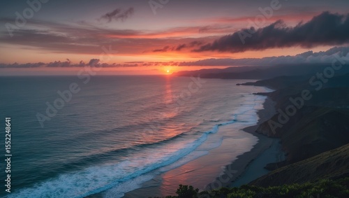 sunset, pacific ocean, coast, island, scenic, vibrant, colourful, twilight, horizon, seascape, nature, landscape, dusk, tranquil, peaceful, tropical, marin, picturesque, breathtaking, serene, evening, atmospheric, high-coloured, no people
