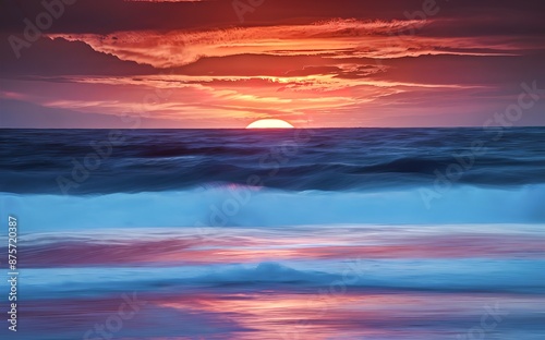 A stunning surreal photograph of a dramatic sunset over the ocean