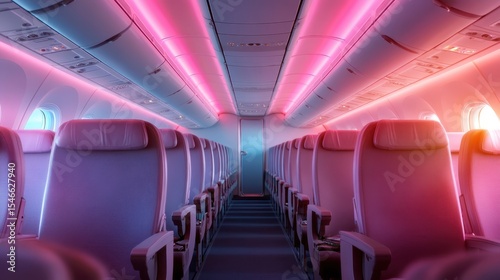 aeroplane, cabin, modern, vibrant, atmosphere, interior, flight, life events, travel, comfort, bright, colours, journey, relaxation, illumination, design, ambience, adventure, flying, calmness, night time, safety, aviation, luxury, chic, transportation, seating, aisle, roomy, contemporary, technology, chrome, aerodrome, sky, view, social, tour tourism, efficient, elegance, lifestyle