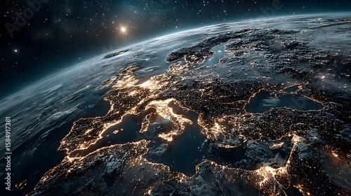 A stunning view of earth at night, highlighting the vibrant city lights across the european continent
