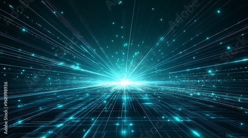 A stunning visual of radiant beams of light spreading outward in a cosmic space, creating a mesmerizing effect.