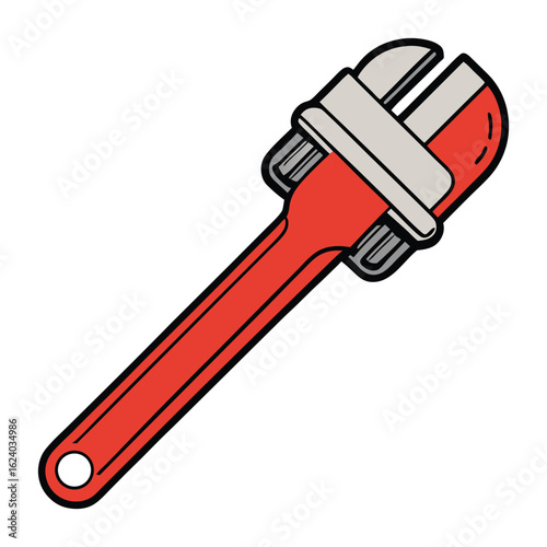 A sturdy red pipe wrench designed for gripping and turning pipes. Its adjustable jaw and durable build make it essential for plumbing and heavy-duty repairs.