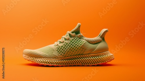 A stylish mint green sneaker against a vibrant orange backdrop, showcasing modern design and fashion appeal.