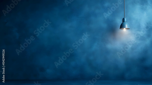 A stylish, modern lamp glowing softly against a textured blue wall, creating a serene and illuminating atmosphere.