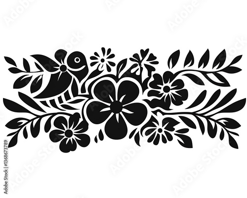 flower, floral, leaf, leaf, tree branch, branch, plant, plant, black, white, design, pattern, silhouette, shape, shape, nature, botanical, ornament, decorative, border, elegant, simple, stylised, graphic, art, illustration, symmetry, detail, flower petals, bloom, blossom, stem, stem, arrangement, organic, flourish, composition, isolated, spring, summer, vibrant, bold, modern, minimalist, artistic